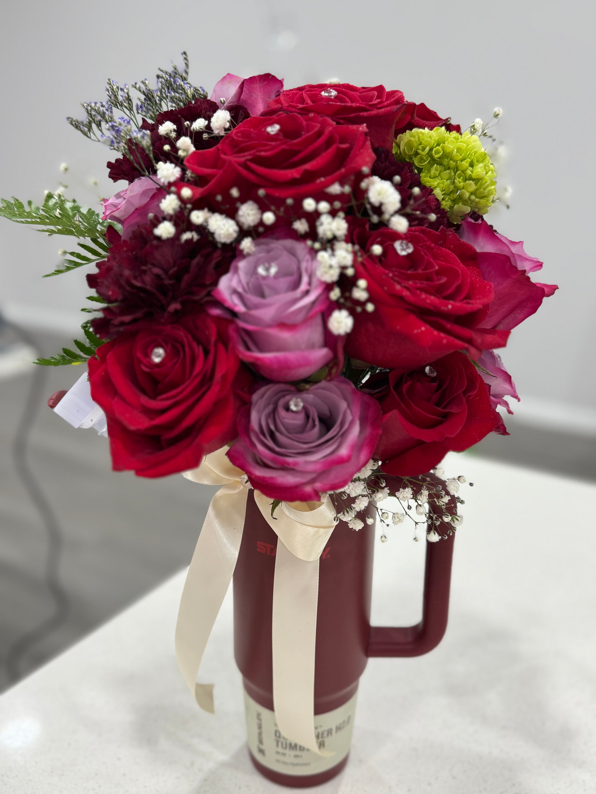 This includes 12 roses, mix flowers, and Stanley or your choice of thermos.